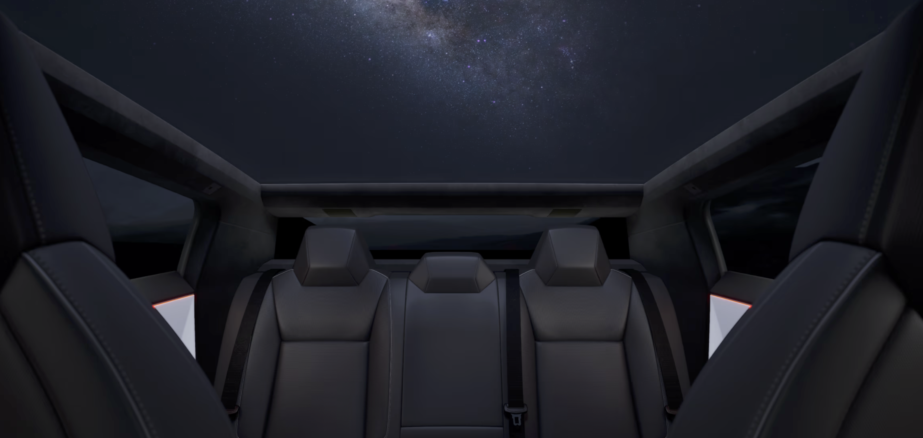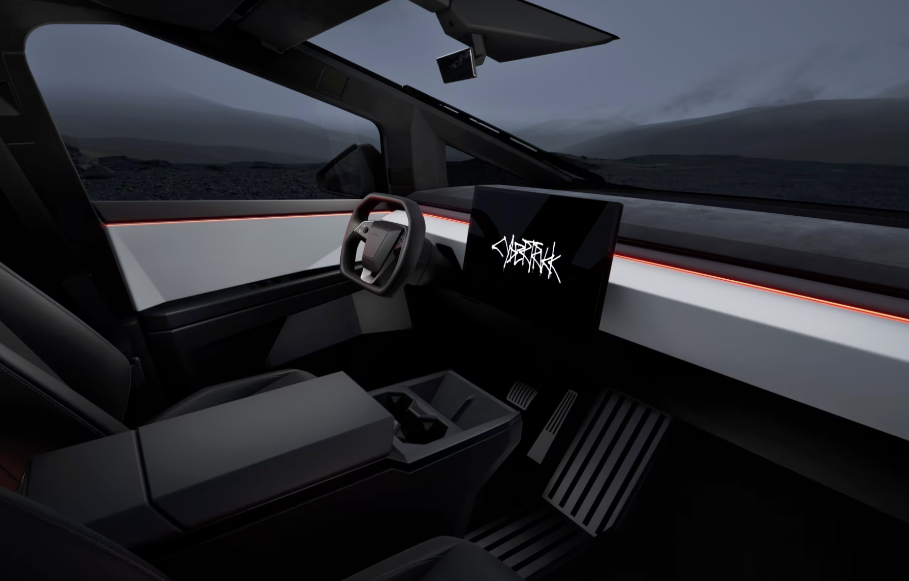 사이버트럭의 내부는 넓고 현대적인 디자인을 가지고 있어요.